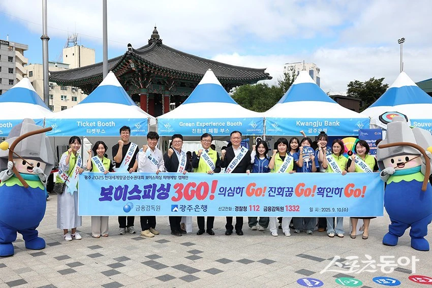 광주은행이 지난 10일 국립아시아문화전당 5.18 민주광장에서 열리는 ‘광주 2025 현대세계양궁선수권대회’ 결승전 현장에서, 금융감독원 광주전남지원과 함께 보이스피싱 피해 예방 캠페인을 실시했다.