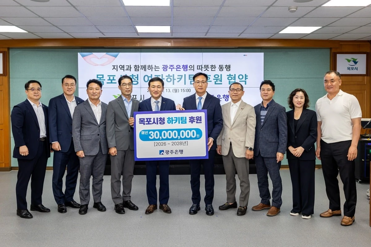 광주은행은 2026년부터 2028년까지 매년 3000만원씩 총 9000만원을 목포시청 여자하키팀에 지정 기탁하기로 했다.