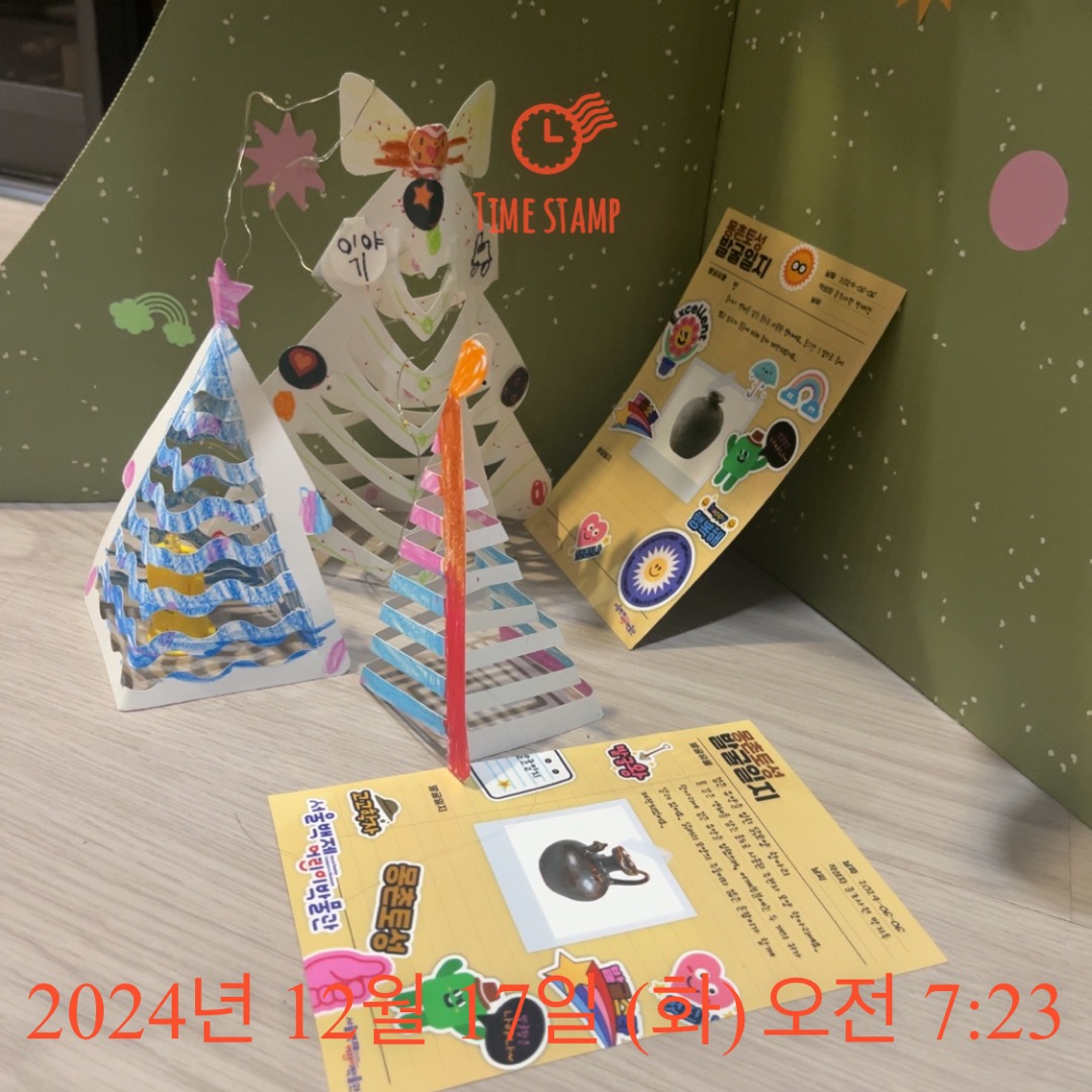 동생도 함께 워크지 활동하며 수업참여해 즐겁게 트리 만들며 이야기 나누었고 사진처럼 큰트리앞에 미니 트리 세워두고 꾸미는 모습이었습니다. 감사합니다.