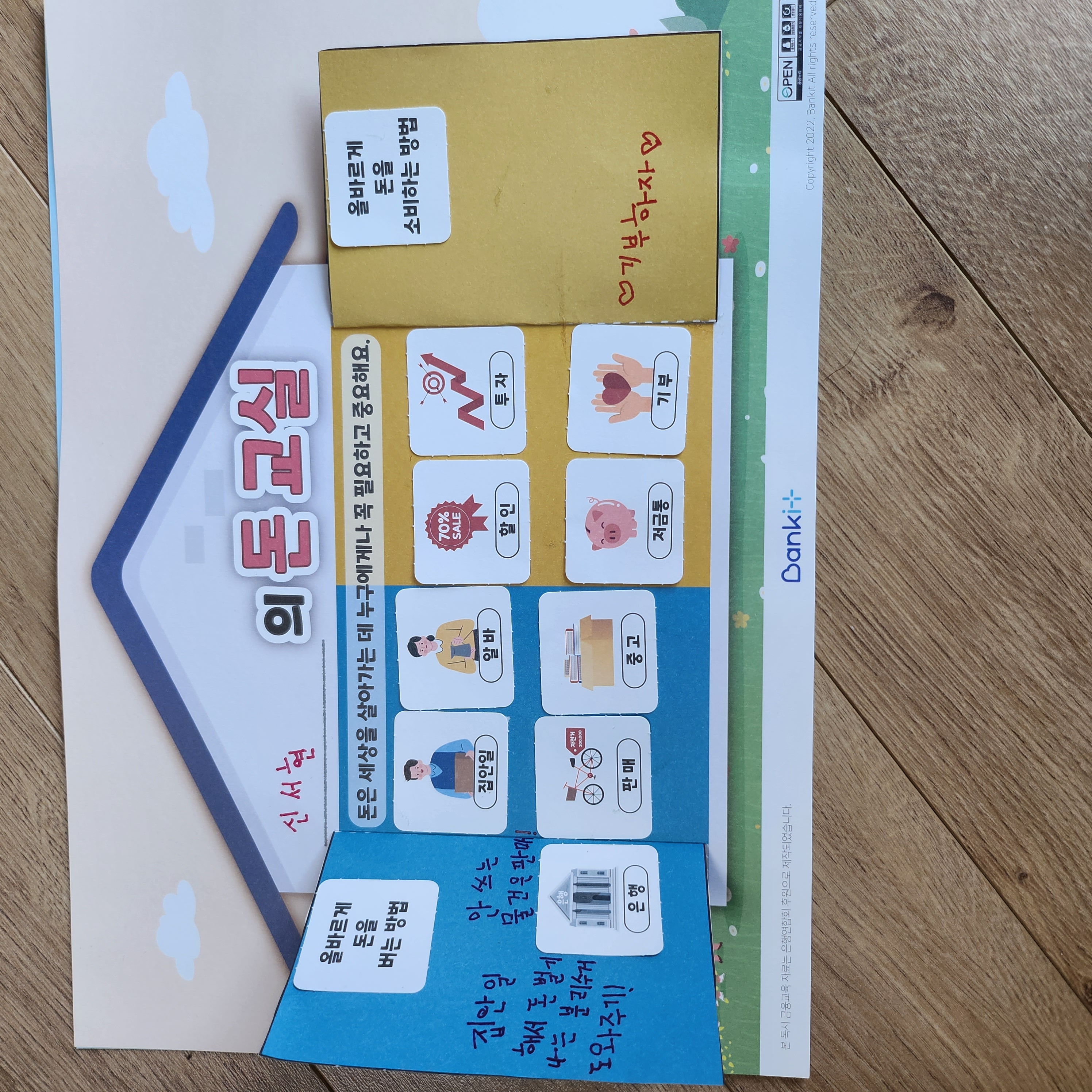 엄마 퇴근전에 시작하게 되는 시간이라, 아빠랑 접속해서 혼자 잘하고 있더라구요^^ 사실 책을 미리 준비 못해 어제 오전에 빌려서 바쁘게 읽었능데도 활동지 다 풀어두고 수업준비하는 걸 보고 진짜 이 수업을 좋아하는구나 느꼈어요^^