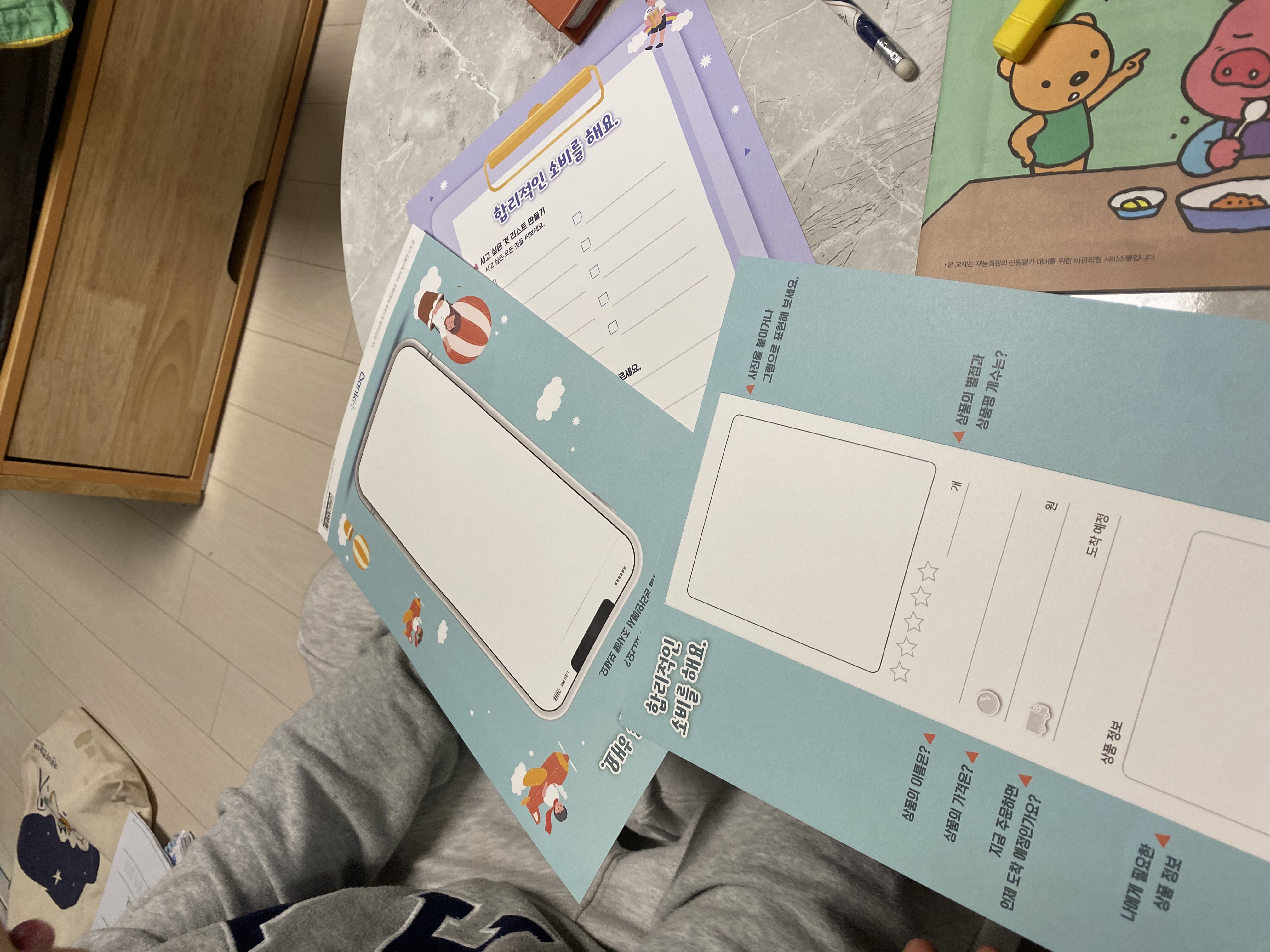 이번달 수업은 합리적은 소비를 위해서 살까 말까를 읽고 리스트도 작성해보고, 소비를 할 때 기분이나 그냥 하는 것이 아닌. 내가 꼭 필요하고 가지고 싶은 것을 생각해보고 써보는 시간을 가졌네요~ 저희 아이는. 레고 비행기가 가지거 싶다내요.. 산타할아버지에게 편지라도 써야 할까요 ㅋ 합리적인 소비가 만족감을 준다는 말로 아이랑 이야기를 나누었습니다~ 항상 감사드립니다.