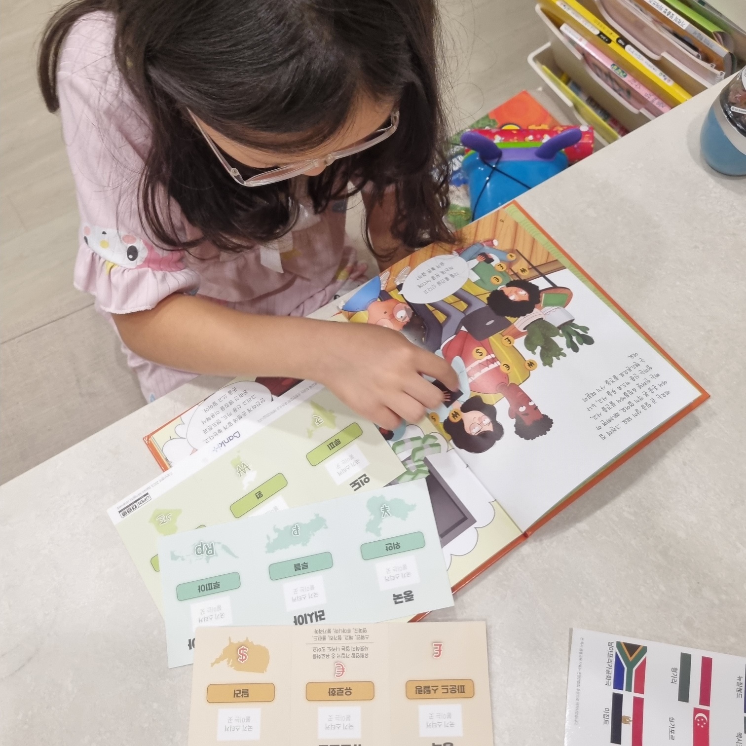 * 새롭게 배운 내용 : 이 활동을 하기 전 아이들에게 어떤 것이 궁금한지 물어보았다. 돈이 처음에 어떻게 생겨났고, 지금의 화폐는 어떻게 만들어지게 되었나 제일 궁금해 했다. 그런 것을 이해하기 쉽게 잘 정리된 책을 읽었더니, 돈에 대해 더 정확하게 알게 되었다고 한다. 각 나라의 화폐에 대해 이야기할 때는 자신이 접해본 나라(프랑스, 미국, 일본, 중국, 태국)에 관심을 보이는 것으로 보아, 체험 학습을 통해 기억하는 것을 자신감 있게 드러냈으며, 이번 활동에서 관심을 이어나가는 것이 흥미로웠다.
