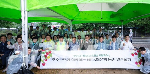 NH농협은행은 지난 20일 전국 곳곳의 일손 부족 농가를 지원하기 위해 전사적인 영농철 일손돕기 활동을 펼쳤다고 23일 밝혔다. 강태영 은행장은 중앙본부 및 서울강북사업부 임직원, 우수 고객들과 함께 경기 포천시 산딸기 농가를 방문해 부족한 농촌 일손을 도왔다.