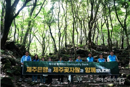 제주은행(은행장 이희수)은 12일 제주 생태계의 허파인 곶자왈 숲에서 임직원 플로깅(조깅+쓰레기 줍기) 봉사활동을 펼쳤다.