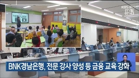 BNK경남은행은 금융교육 전문 강사를 지속적으로 양성하는 등 금융교육을 강화하고 있다고 밝혔습니다.