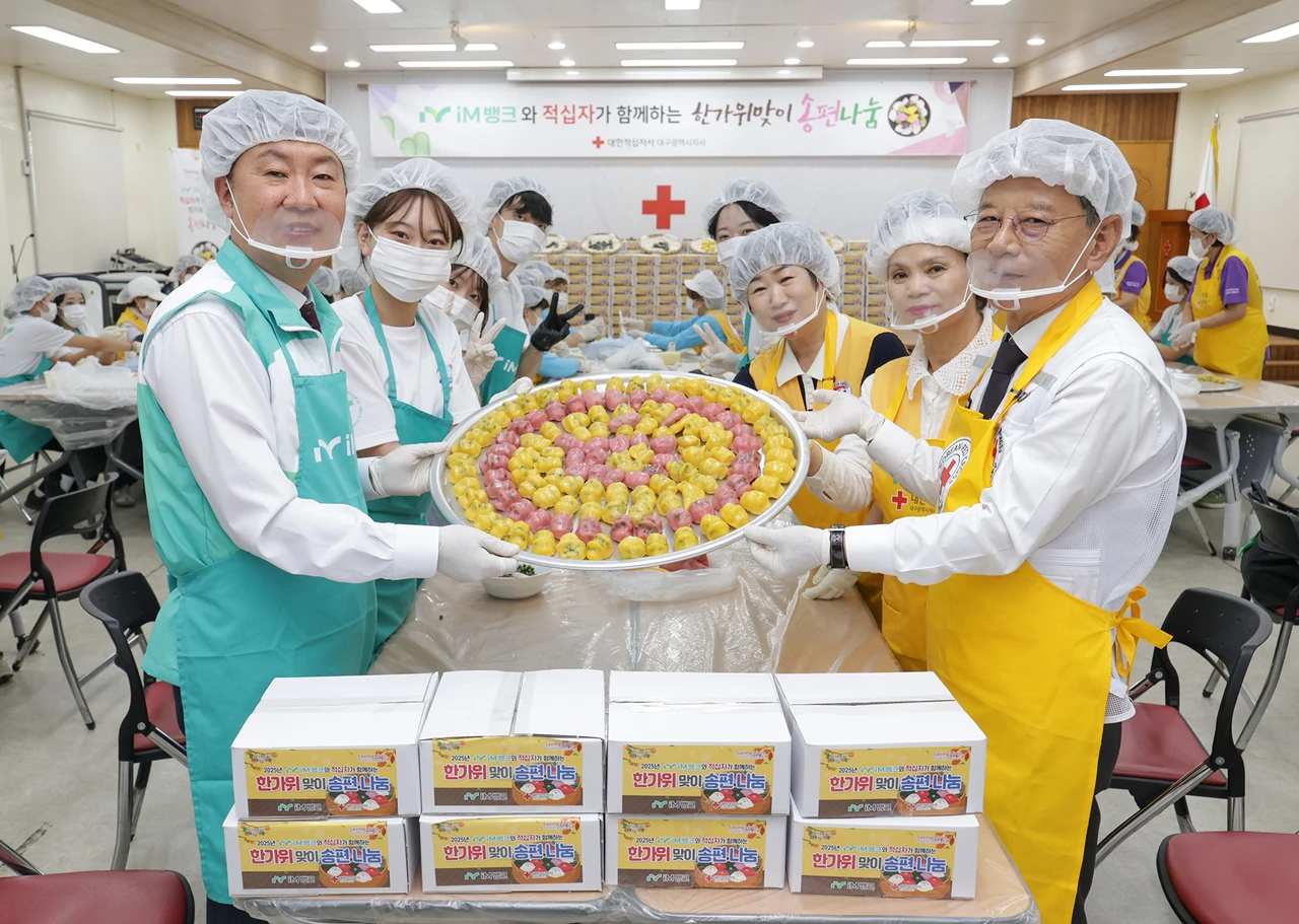 iM뱅크는 대한적십자사 대구지사(회장 배인호)와 함께 ‘한가위 맞이 송편 나눔 행사’를 진행하고 후원금을 전달했다고 1일 밝혔다.