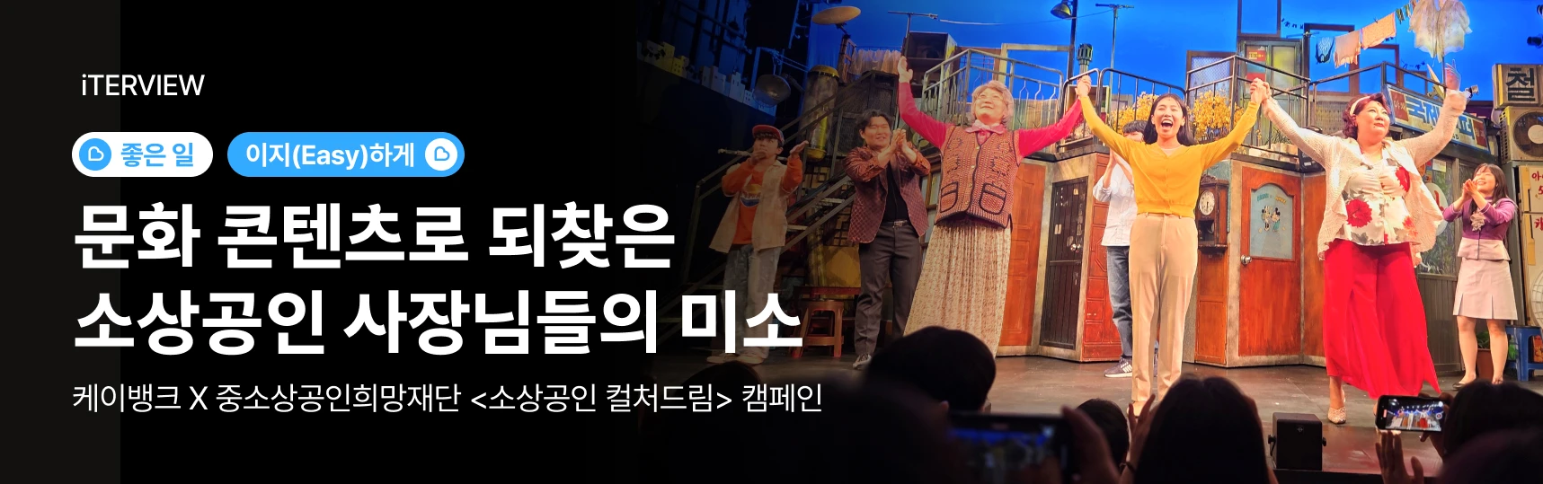 그리고 이번 소상공인 문화관람 지원 캠페인이 일회성이 아닌 지속적인 사업으로 이어지길 바랍니다. 캠페인에 참여한 많은 소상공인 분들이 공연관람이라는 뜻밖의 경험을 통해 자신의 삶을 돌아보며, 잊고 있던 여유를 되찾고 다시 나아갈 힘을 얻었다고 합니다. 기업에게는 직접적인 지원도 중요하지만, 일상에 긍정적인 변화를 만드는 것 또한 가치있고 지속해야 할 일이라고 생각합니다. 앞으로도 케이뱅크와의 협력이 꾸준히 이어져, 소상공인에 힘이 되는 사회공헌 모델로 발전해 나가길 기대합니다.