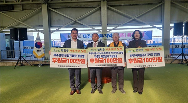 제주은행 한림지점(지점장 김민범), 북제주새마을금고(이사장 양인실), 관덕라이온스클럽(회장 박종만)은 지난 21일 한림읍장애인지원협의회에 관내 취약 장애인 가구에 전달해 달라며 각각 100만원씩 후원금을 전달했다.