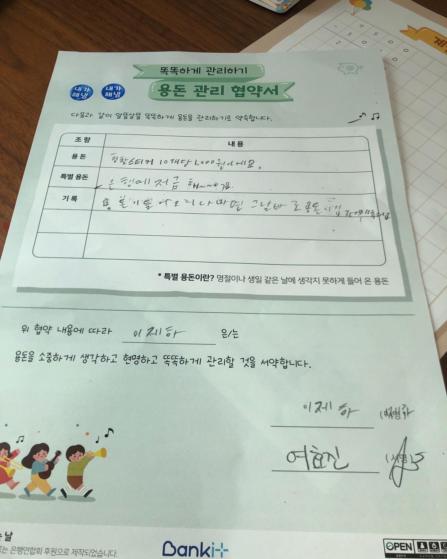 용돈기입장 기록도 너무 쉽게 설명해주시고 아이가 결의에 차있습니다 ❤️