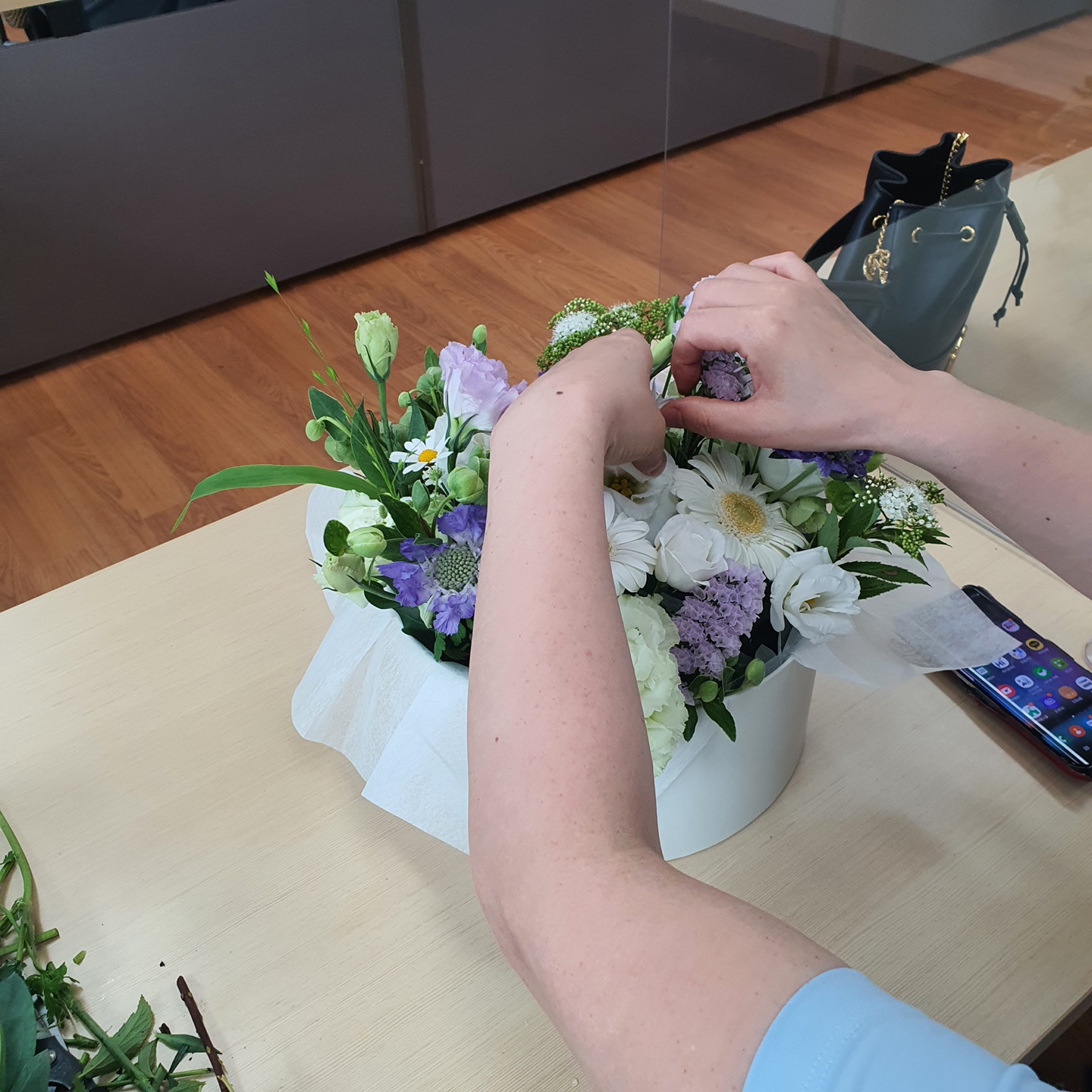 플라워클래스는 처음이라 하셔서 기초부터 하나씩 설명해드렸어요