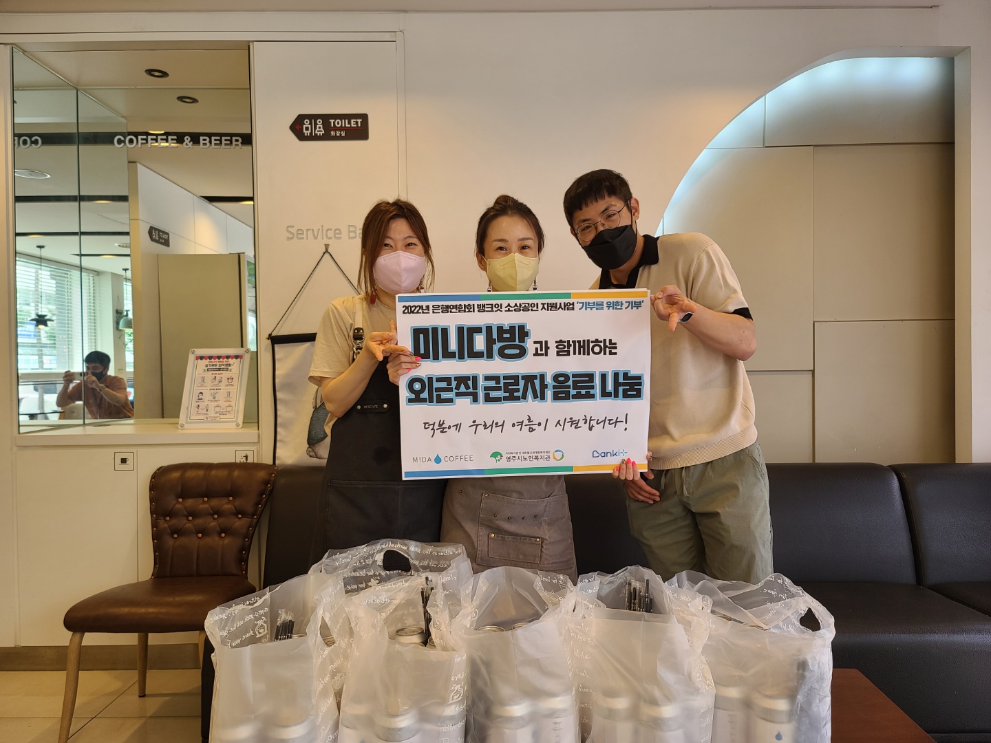또한, 영주시노인복지관과 함께 음료 전달에 참여해보니 우리 카페의 작은 나눔으로 많은 이들의 얼굴에 미소를 선물할 수 있다는 것에 대해 뭉클함과 가슴 벅참을 느낄 수 있었습니다.
