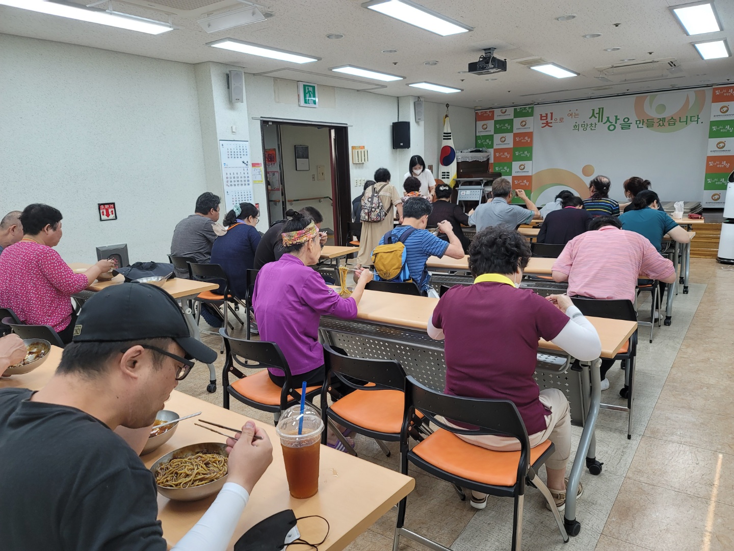 짜장면을 다 드시고 복지관에서 먹는 자장면이 제일 맛있다는 칭찬과 함께 자주자주 왔으면 좋겠다는 말씀을 전해주셨을 때 앞으로도 내가 할 수 있는 만큼은 봉사하고 나눔을 실천해야겠다는 다짐을 하게 됩니다.