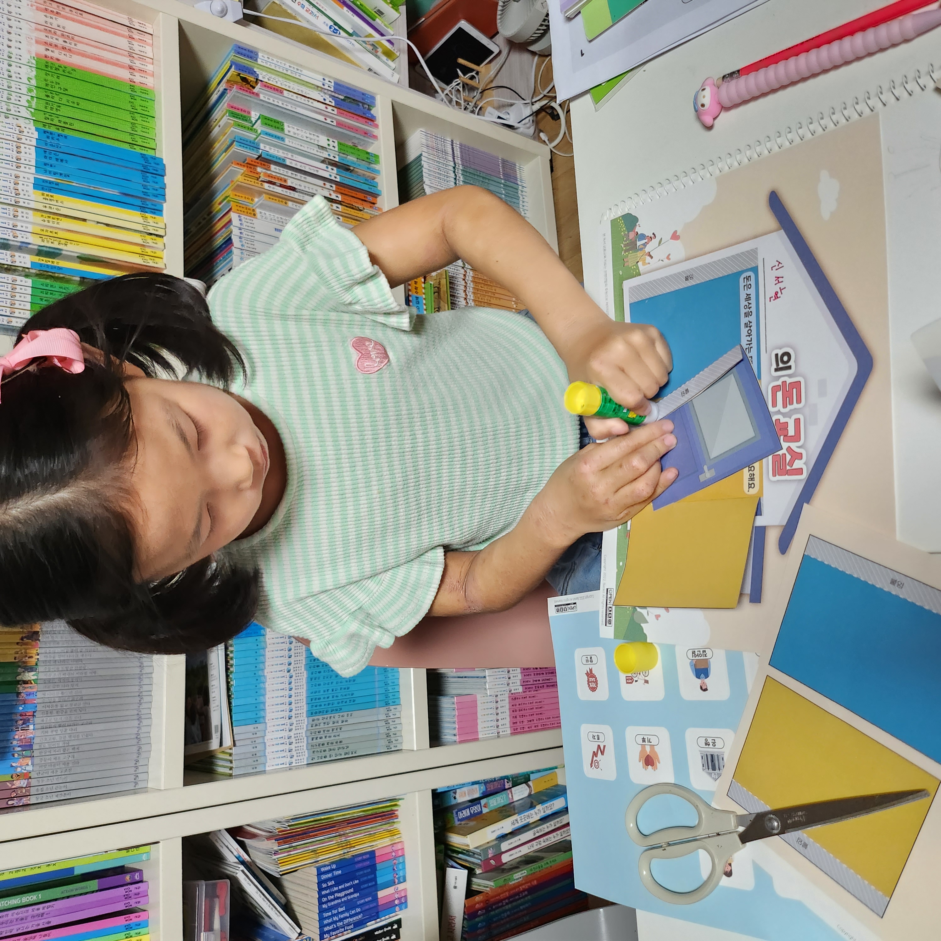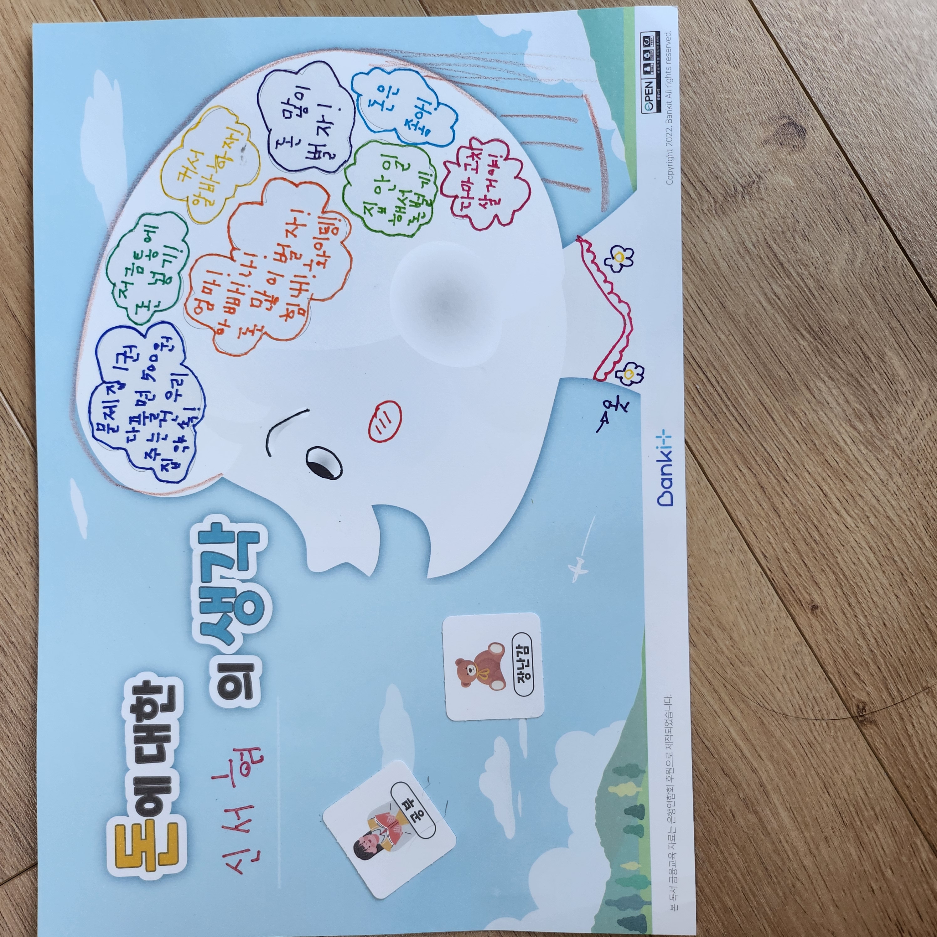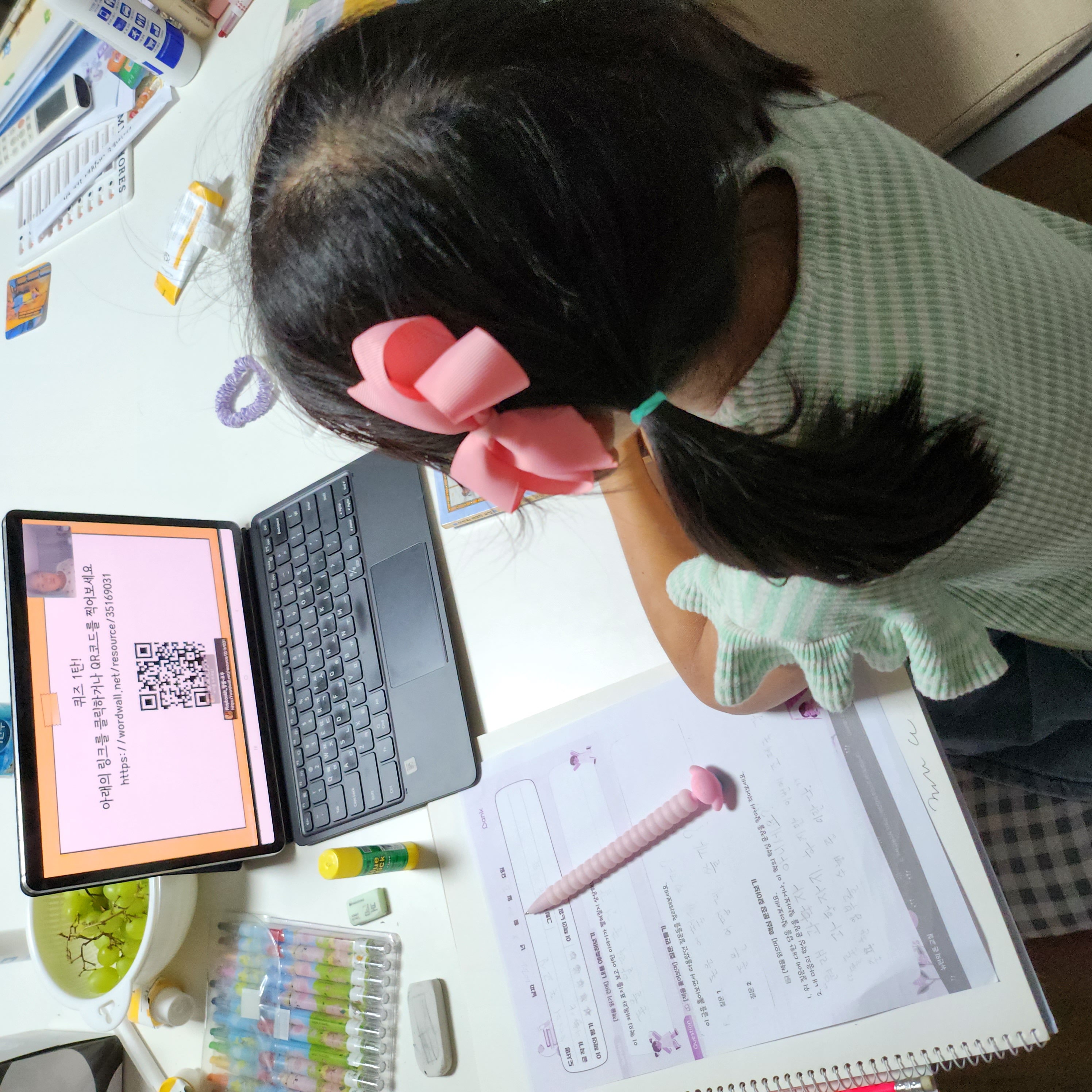 엄마 퇴근전에 시작하게 되는 시간이라, 아빠랑 접속해서 혼자 잘하고 있더라구요^^ 사실 책을 미리 준비 못해 어제 오전에 빌려서 바쁘게 읽었능데도 활동지 다 풀어두고 수업준비하는 걸 보고 진짜 이 수업을 좋아하는구나 느꼈어요^^