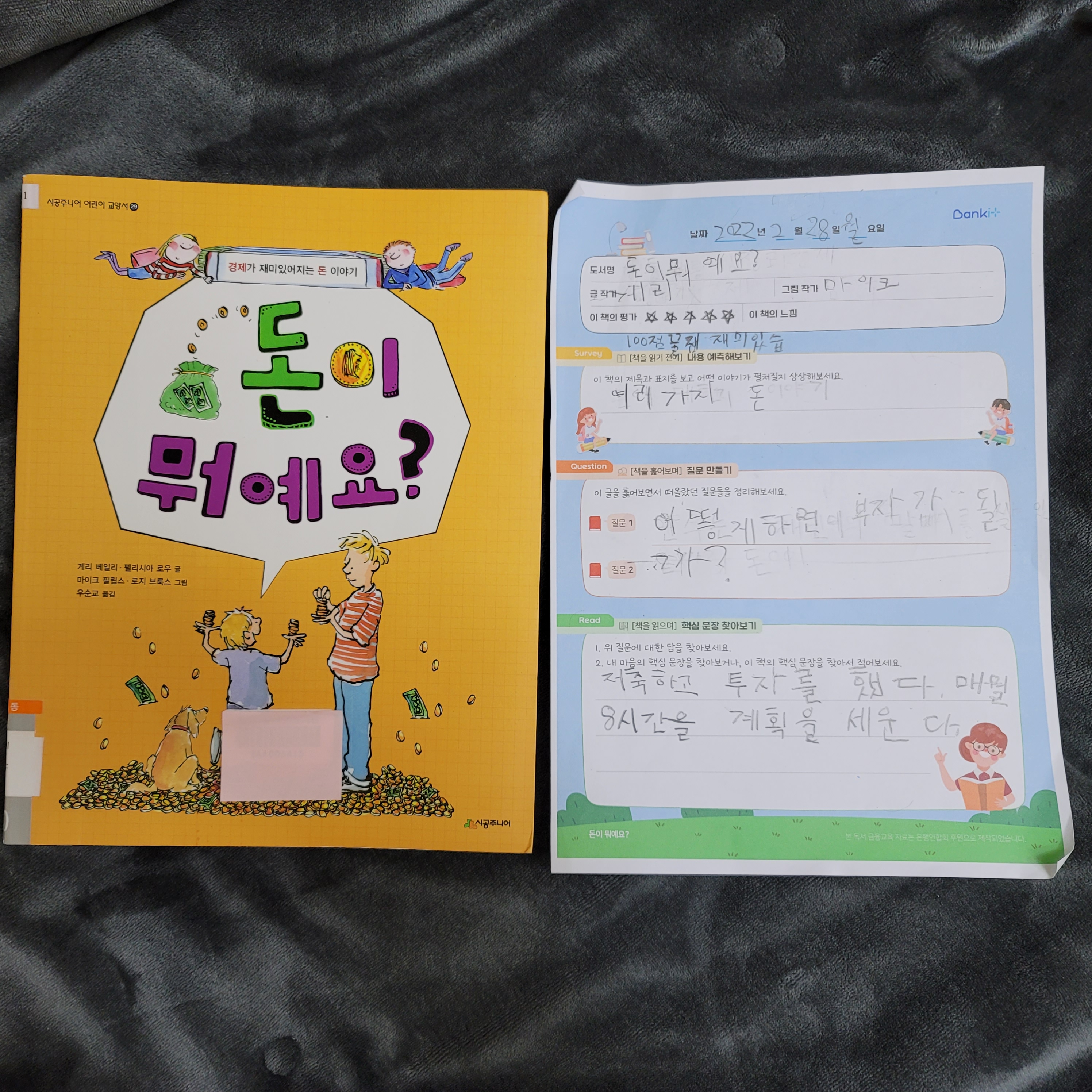 초등학교 2학년 들어가는 아이에게 적당한 수준이었고, 돈에 대해 재밌게 활동해보는 시간이었습니다.