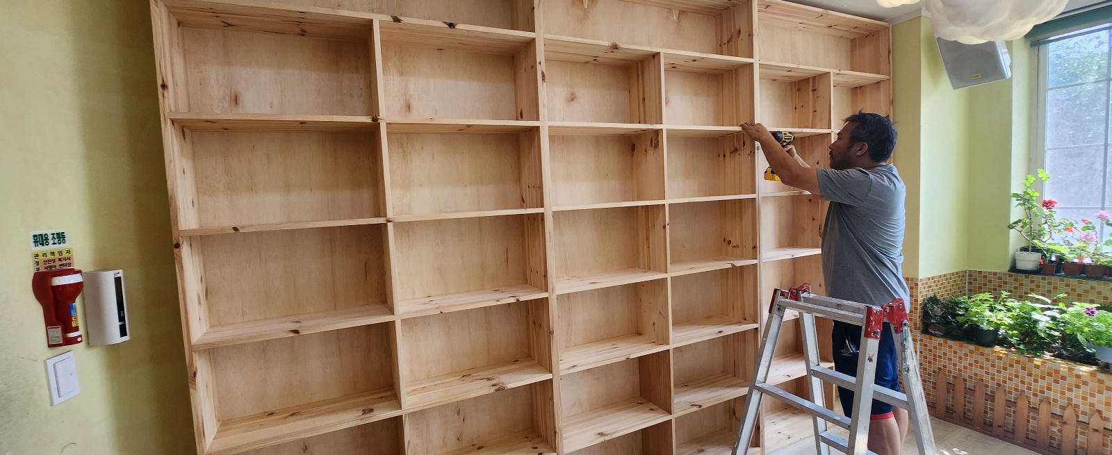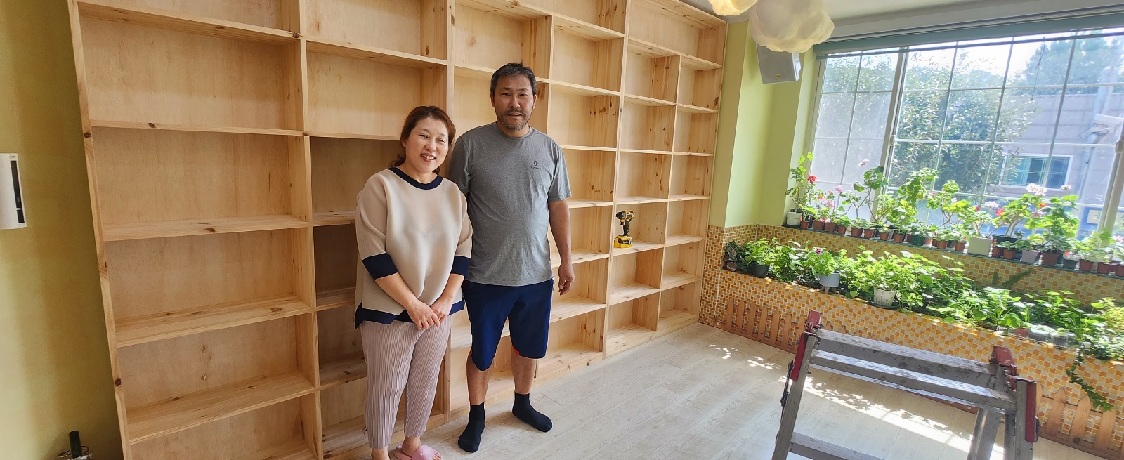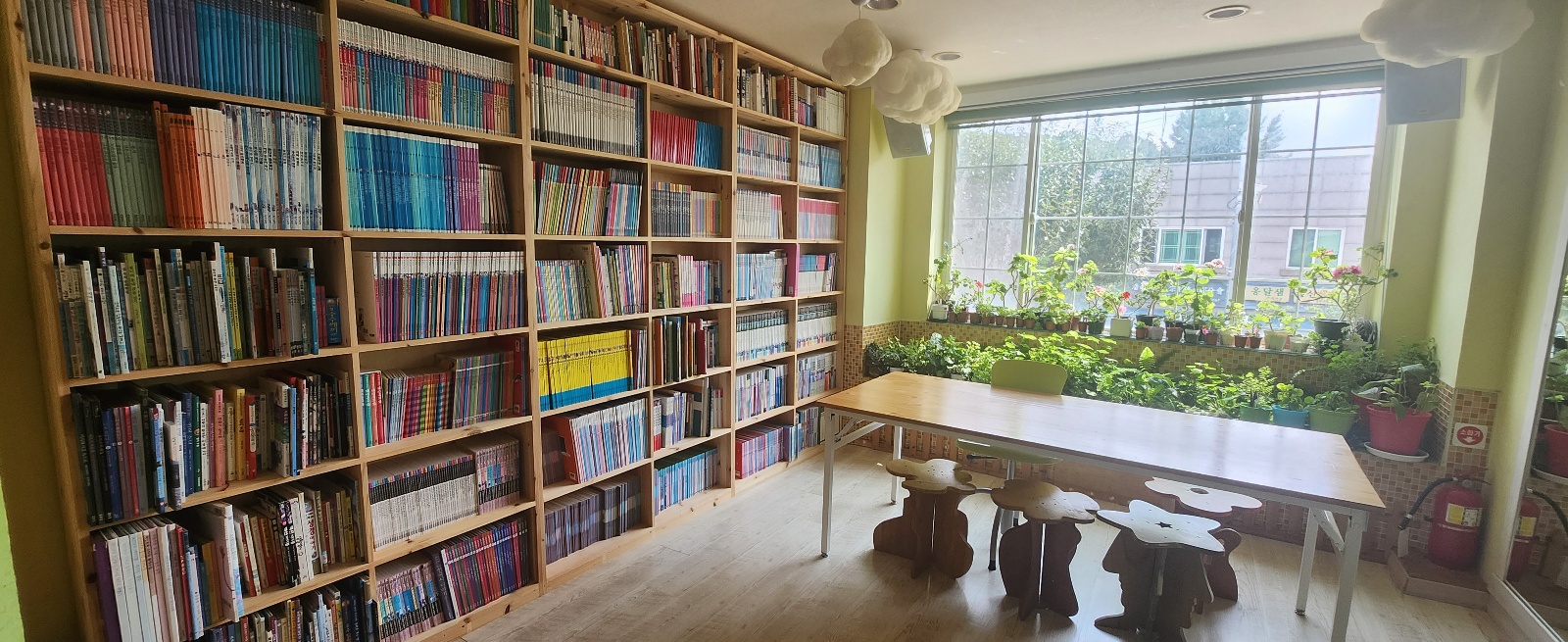 레인보우지역아동센터에 원목 책꽂이가 설치되면서 창고처럼 사용 되던 방이 깔끔하게 정리가 되어