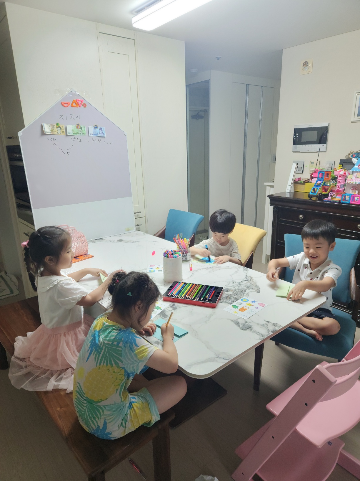 지난 7월 30일 6세 미취학 아동 네 명의 1회차 수업을 진행했습니다.