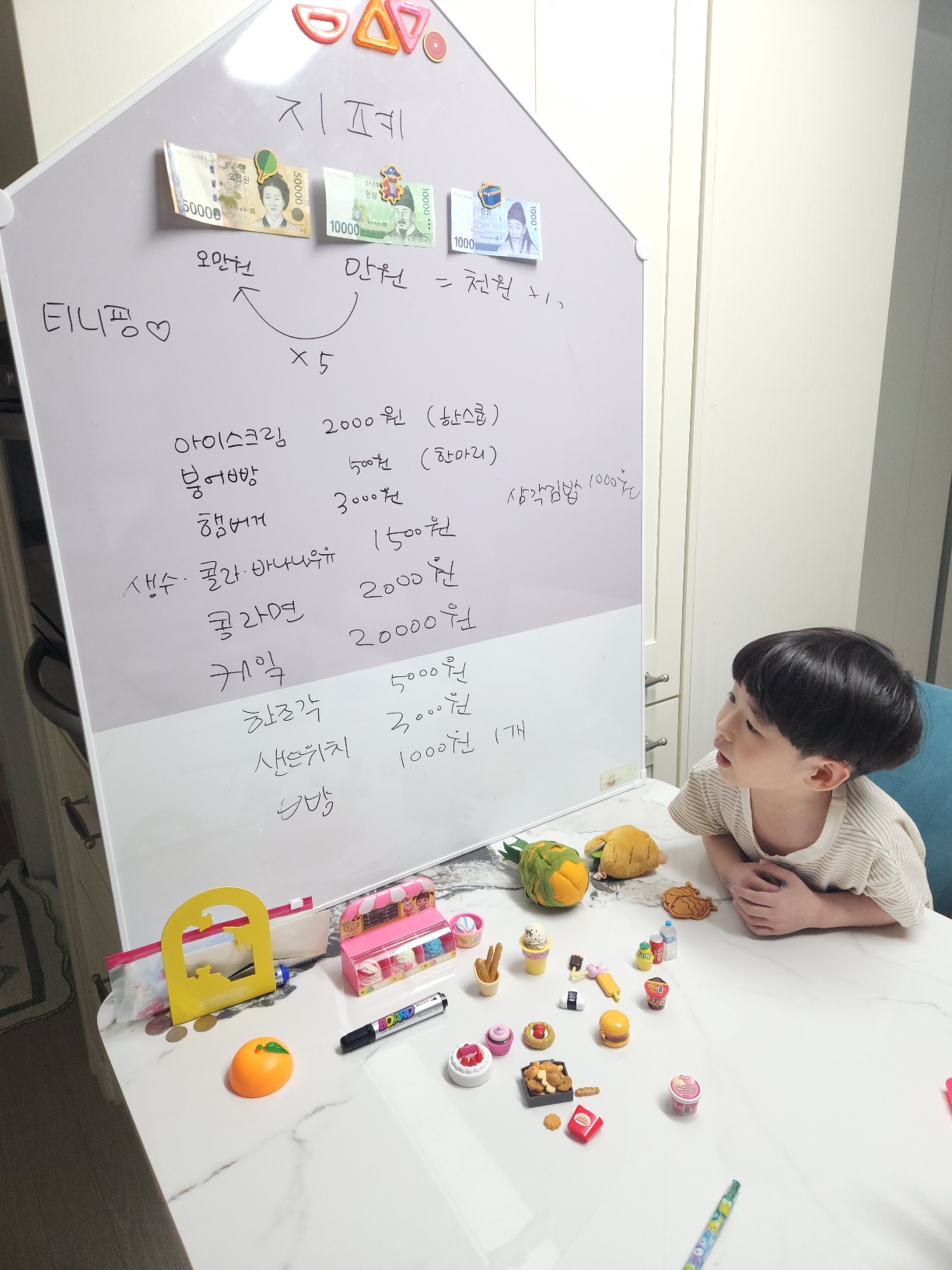그래서 일단 '돈과 친해지는 기회'를 만들고 '돈으로 물건을 사는 경험'을 해보기로 계획을 변경했습니다.