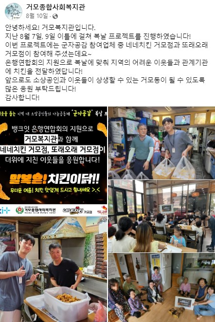 어르신들과 지역의 이웃들이 풍족하게 치킨을 드실 수 있었던 것 같습니다.