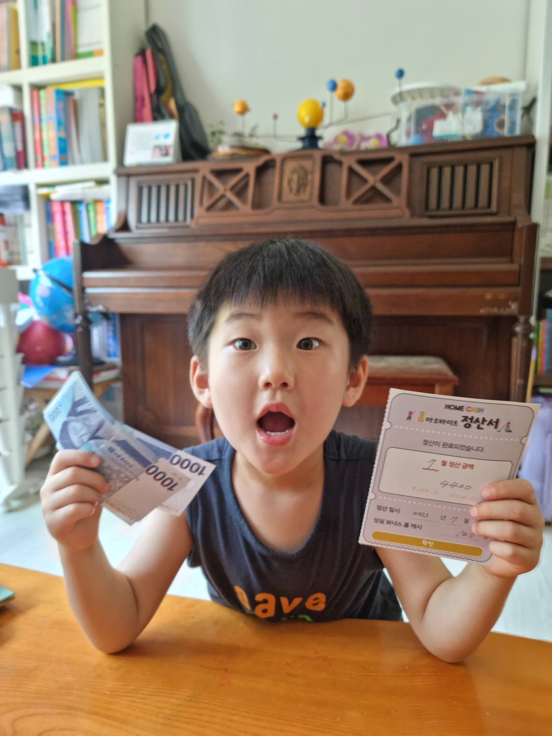 정말 한 달 동안 열심히 일한 친구들은 정산해서 진짜 돈으로 바꿔갔어요. 얼마를 벌었는지 직접 돈을 세어 보고, 엄마에게 말해주면, 엄마가 한 번 더 확인한 다음 정산서에 알바 비용을 적고 현금으로 건네주었답니다. 얼마나 행복해 하던지! 진짜 돈을 받았다고 기뻐하는 아이들을 보니 홈아르바이 활동은 정말 괜찮은 활동이다 싶네요 :) 직접 일을 하고 돈을 번 아이들. 노동의 대가로 돈을 벌 수 있음에 감사하며! 아이들은 이번달도 열심히 홈아르바이트 중입니다.