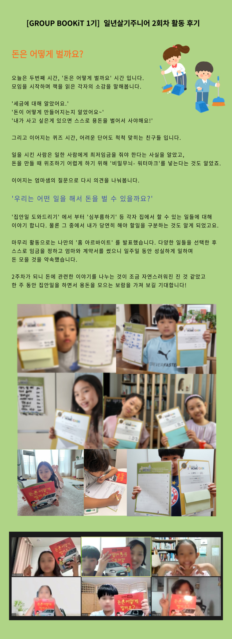일년살기주니어 그룹의 GROUP BOOKiT 2회차 활동 후기 확인하였습니다.