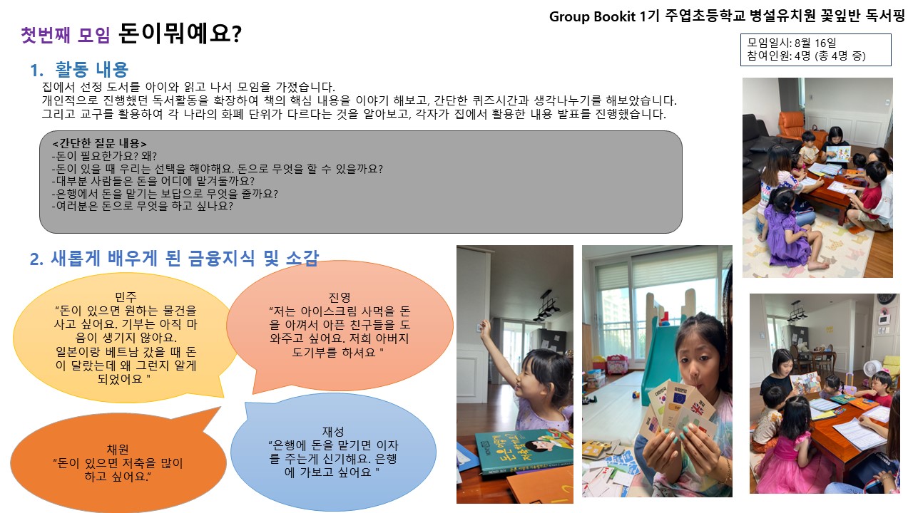 주엽초 병설유치원 꽃잎반 독서핑 그룹의 GROUP BOOKiT 1회차 활동 후기 확인하였습니다.