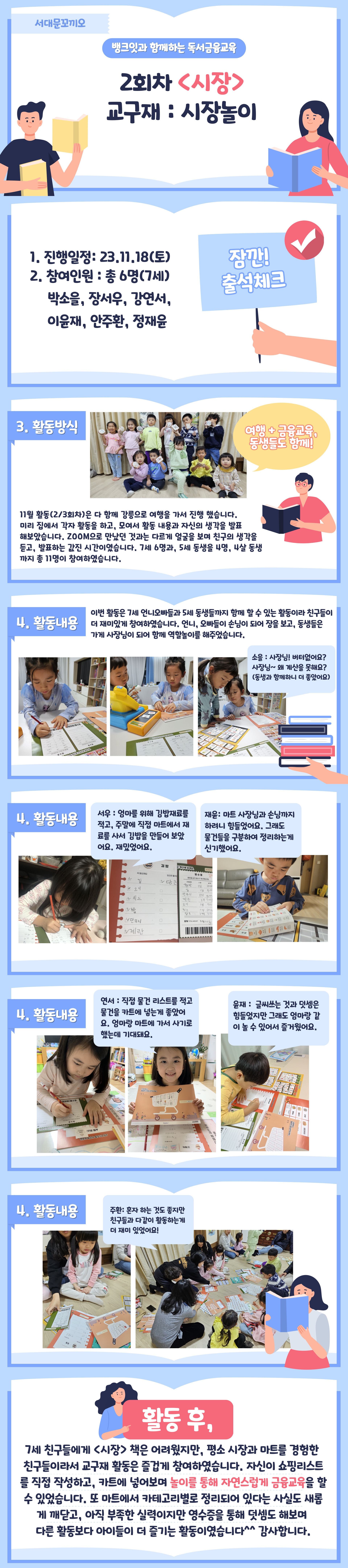 서대문꼬끼오 그룹의 GROUP BOOKiT 2회차 활동 후기 확인하였습니다.