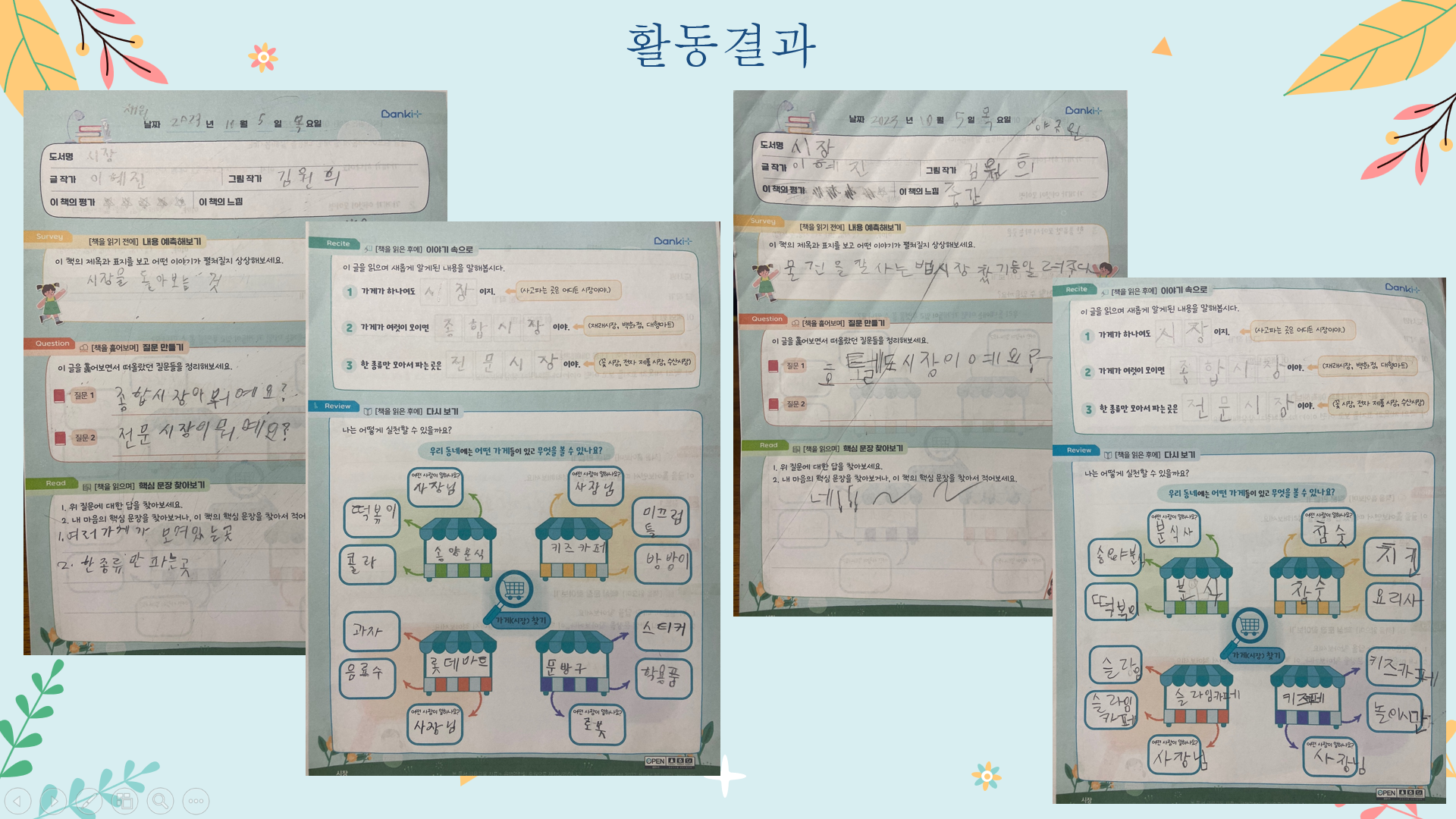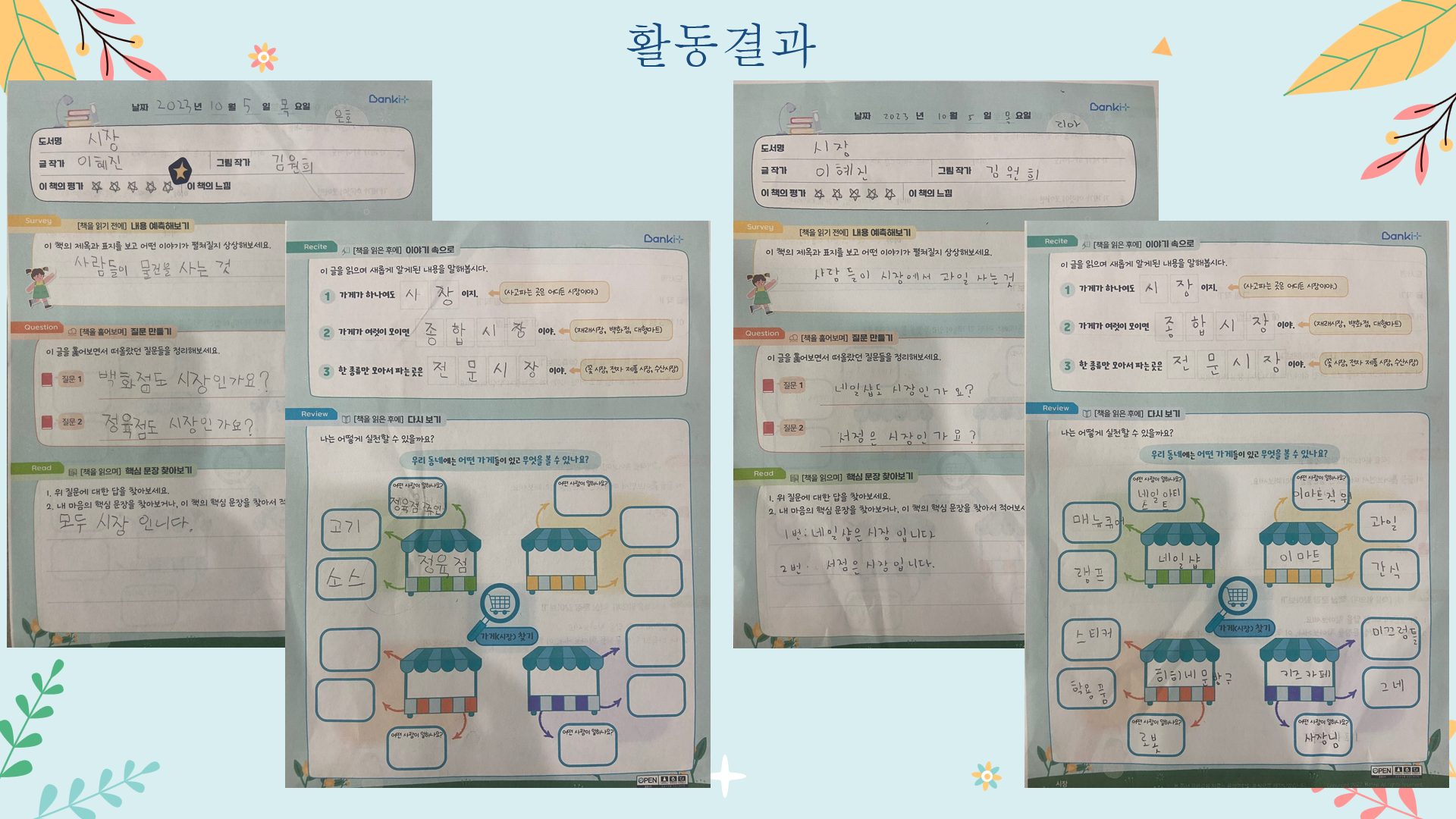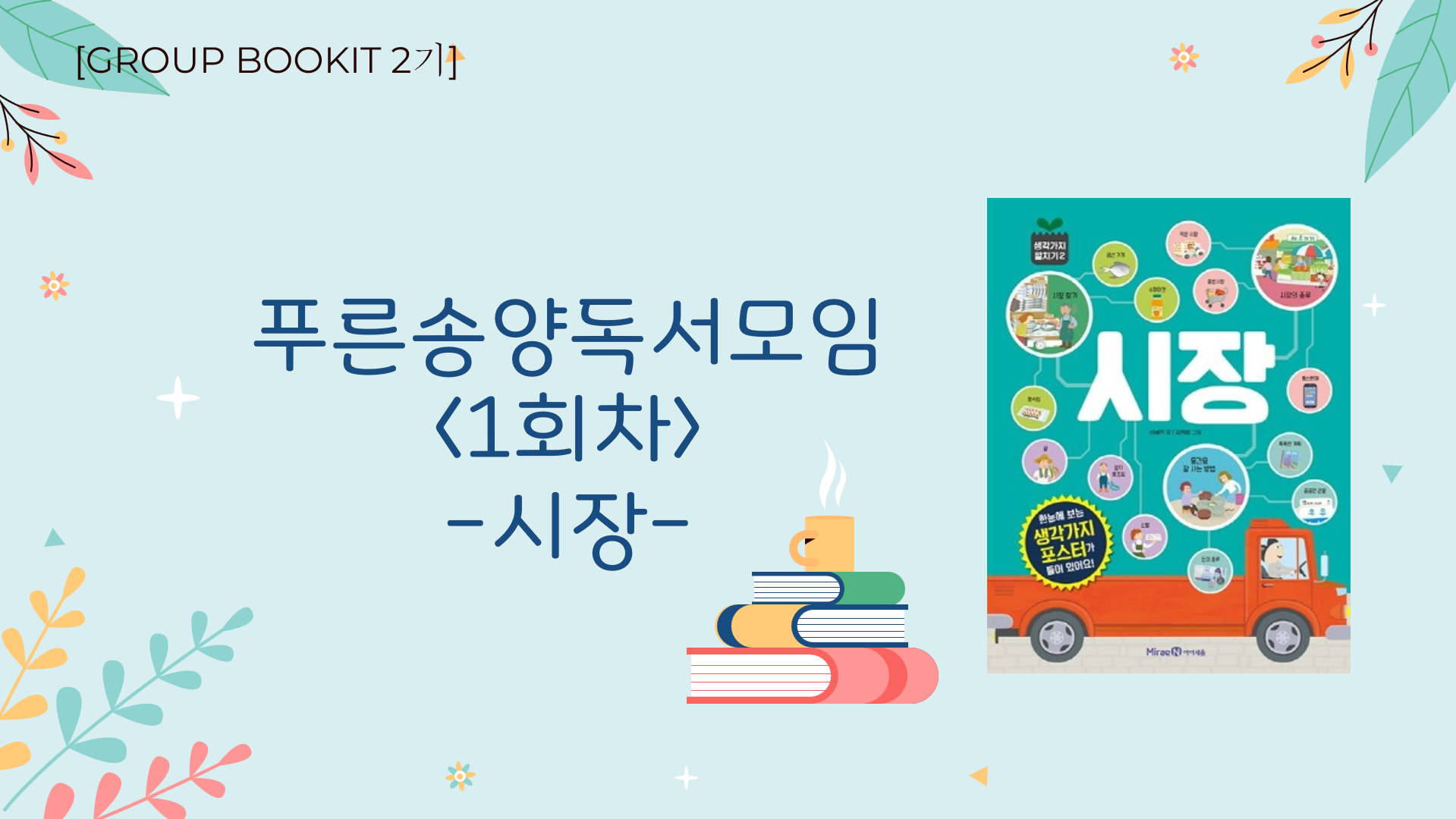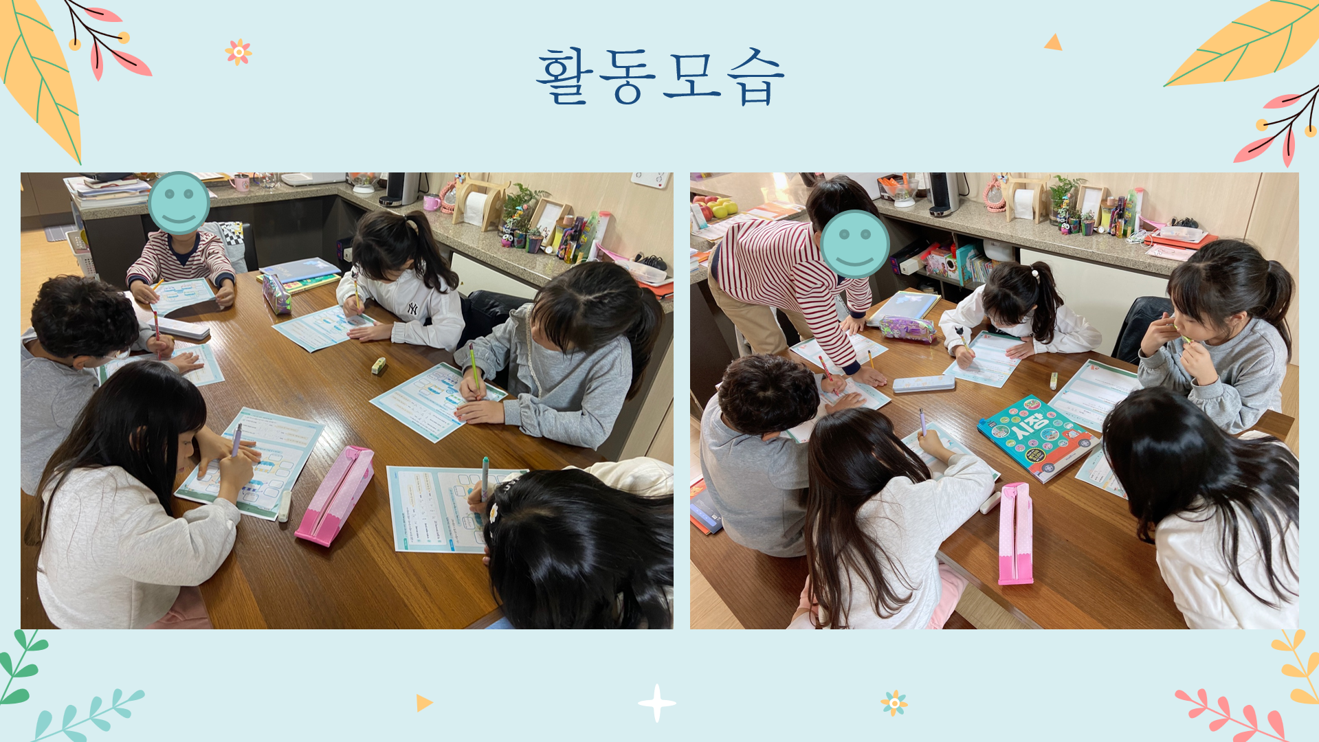 초등학교 1학년과 2학년으로 구성된 저희 푸른송양독서모임팀은 책을 읽고 난 뒤 작성하는 독후활동과 교구재를 활용하는 시장활동을 두 주에 걸쳐 진행했습니다。