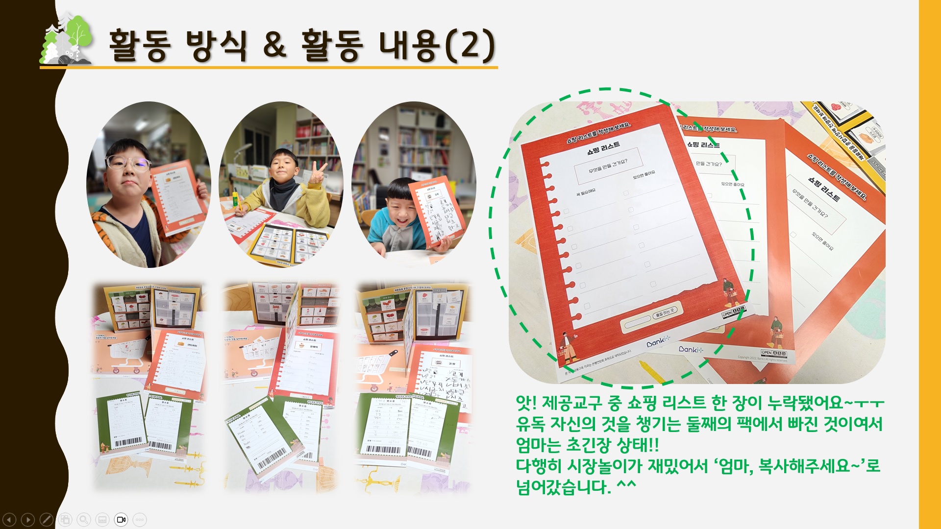 활동지 하나는 중복, 하나는 누락이 됐습니다. 다행히 가정에 있는 복합기로 해결이 되었답니다. ^^