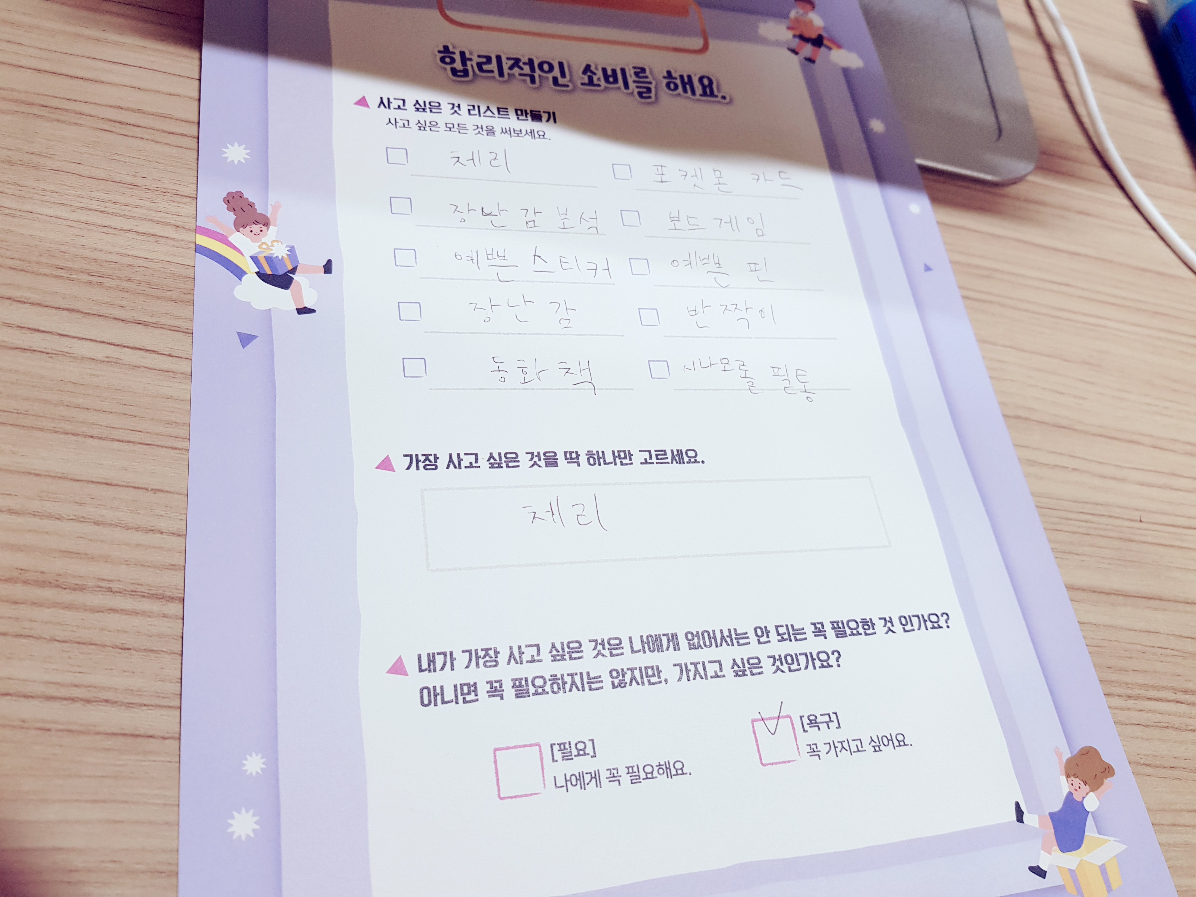 합리적인 소비란 관연 무엇일까 생각해보며 사고싶은 물건들의 목록도 직첩 작성해보고 필요와 욕구에 따라 최선의 선택을 해보는 것도 배우게 되었답니다.