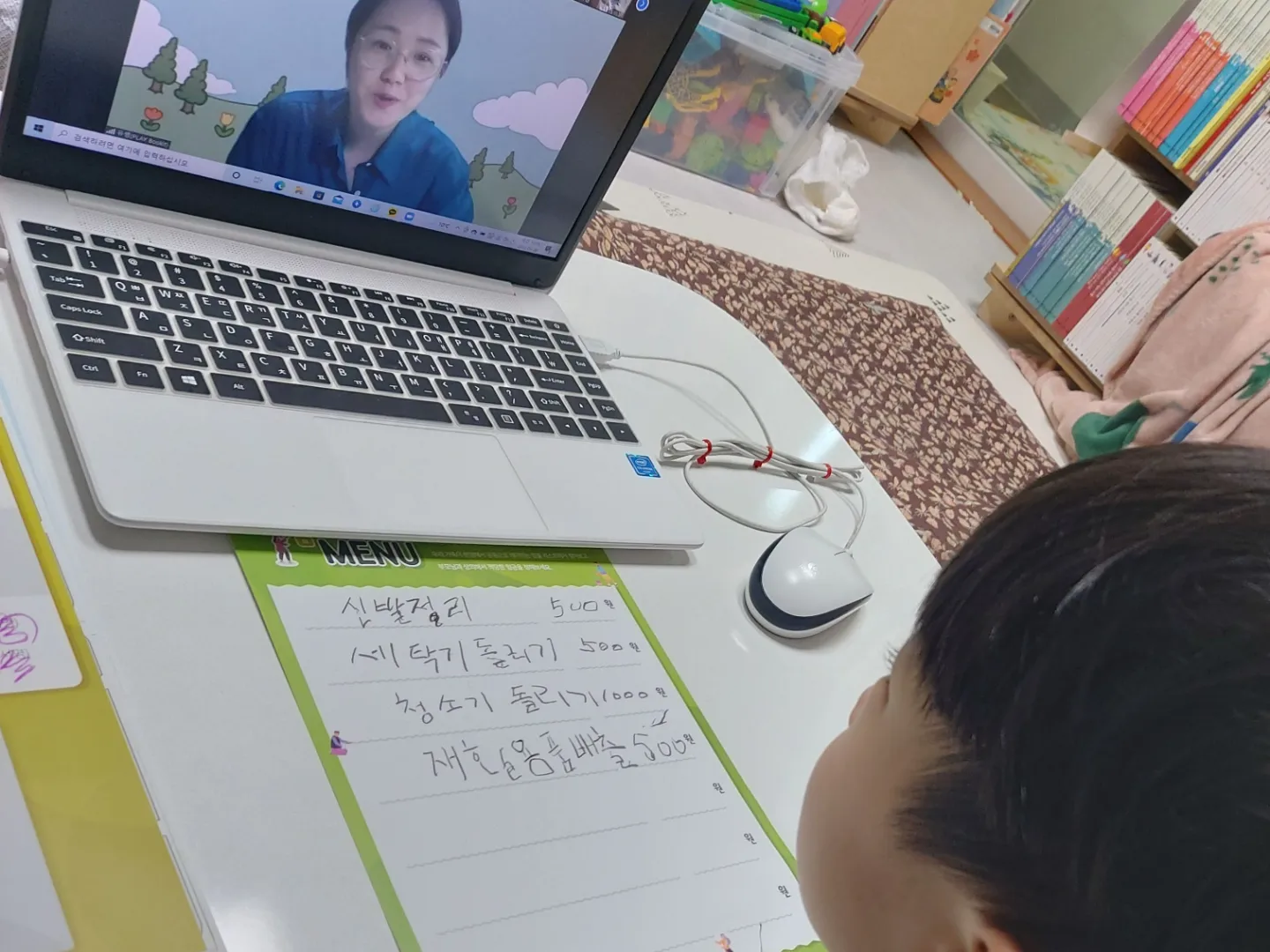 퀴즈도 큰 소리로 대답하고, 키트 같이 하면서 "선생님 민준이 다 했어요" 라고 말하고, 자기가 작성한거 발표도 했어요.